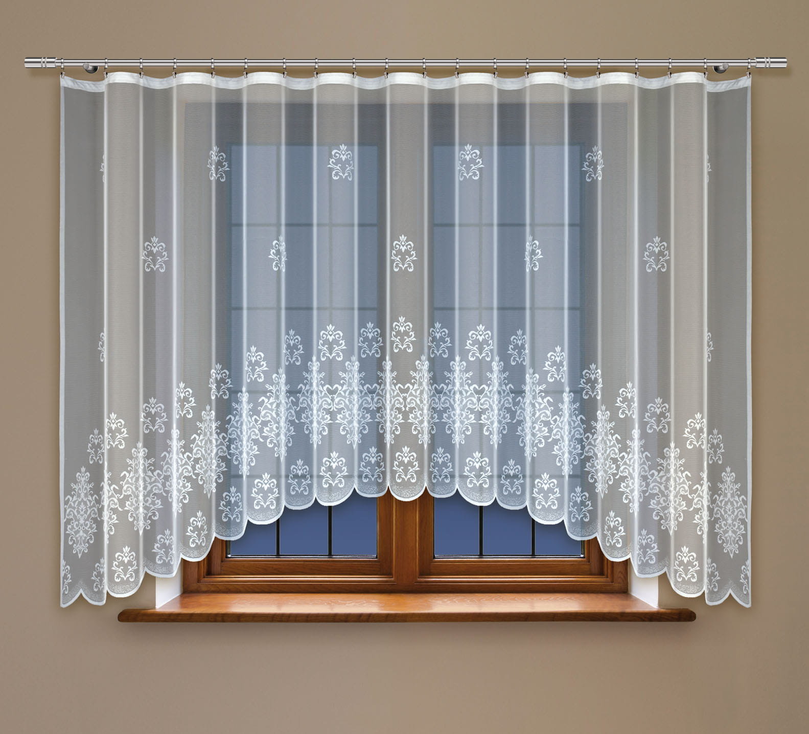 Kvalitní žakárová hotovádekorační záclona s řasící páskou v moderním provedení do kuchyně nebo obývacího pokoje v rozměru 300x180 cm. Záclona je připravena na zavěšení na žabky nebo háčky. 1 kus v balení. Záclona má řasící pásku 3,5 cm.