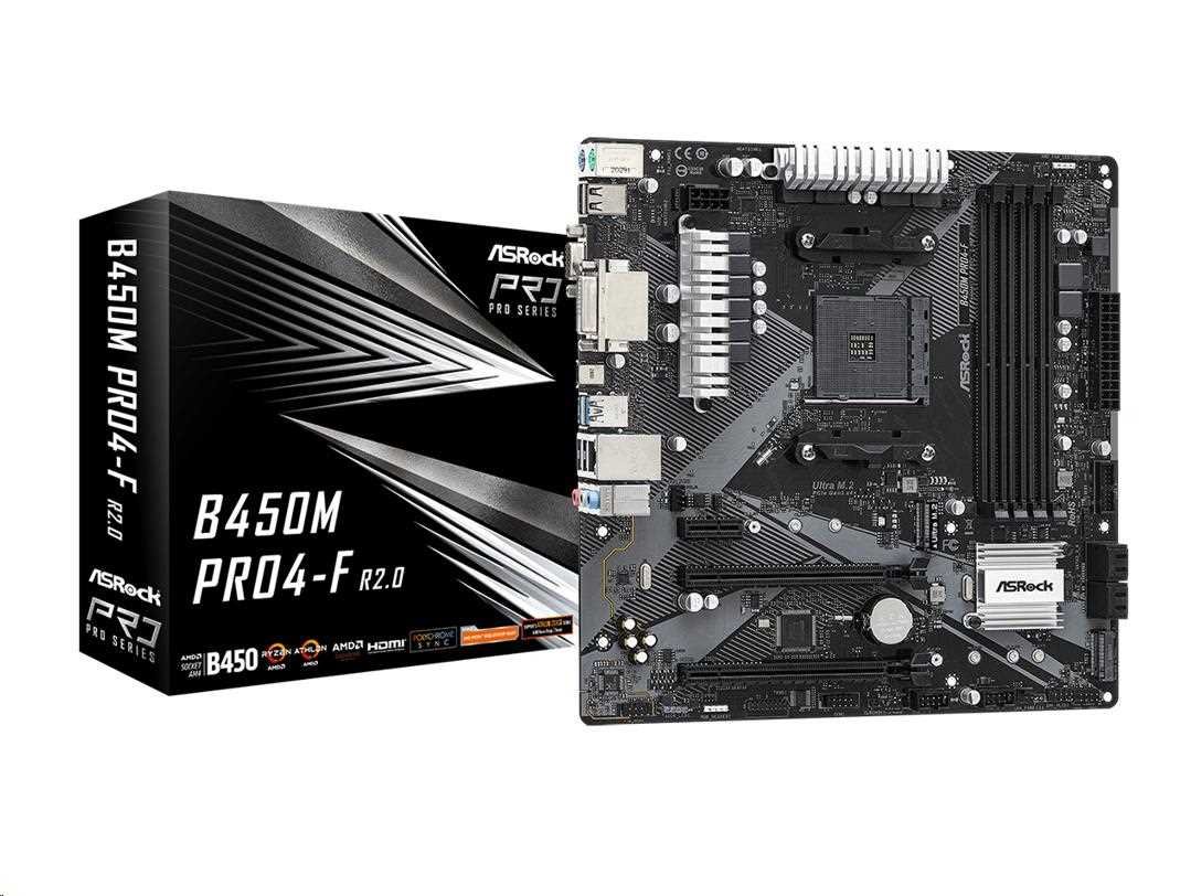 Základní deska ASRock Sc AM4 B450M PRO4-F R2.0, AMD Promontory B450, 4xDDR4, 1xHDMI, 1xDVI, 1xVGA, mATX