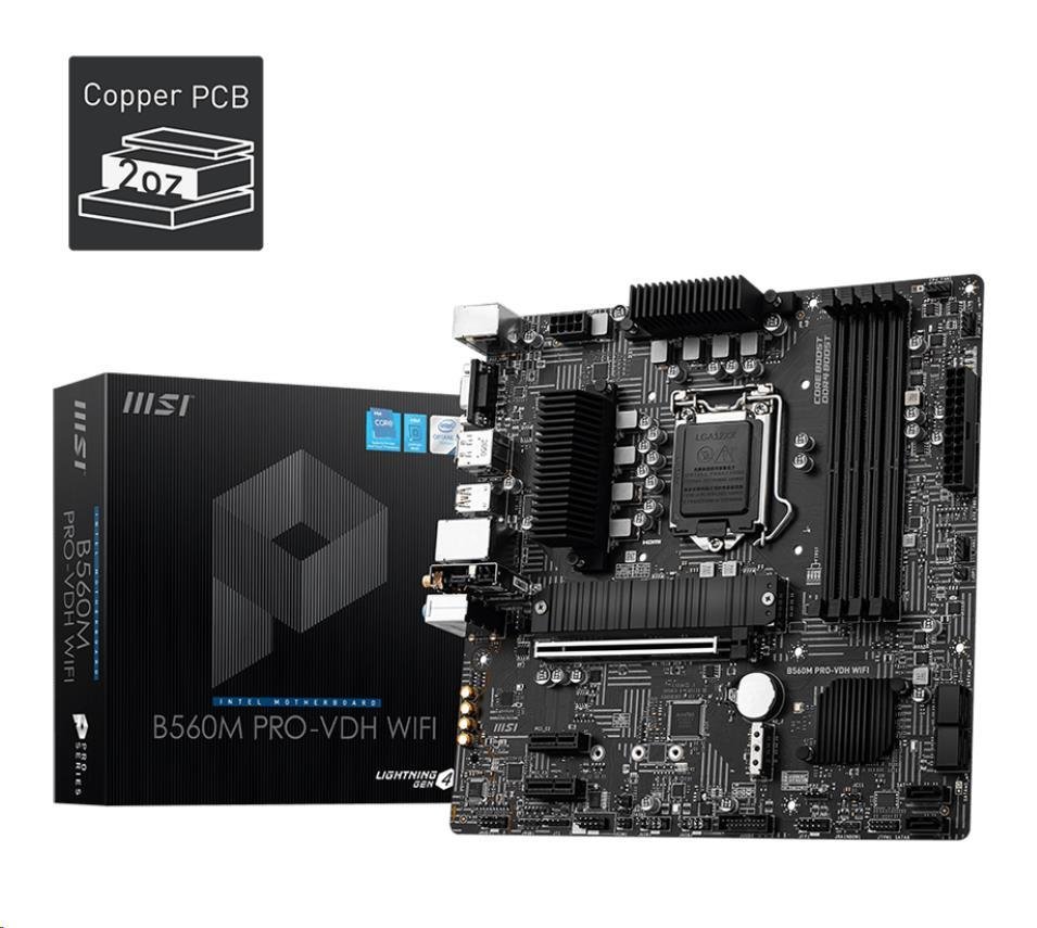 MSI MB Sc LGA1200 B560M PRO-VDH WIFI, Intel B560, 4xDDR4, 1xDP, 1xHDMI, VGA, WI-FI, mATX