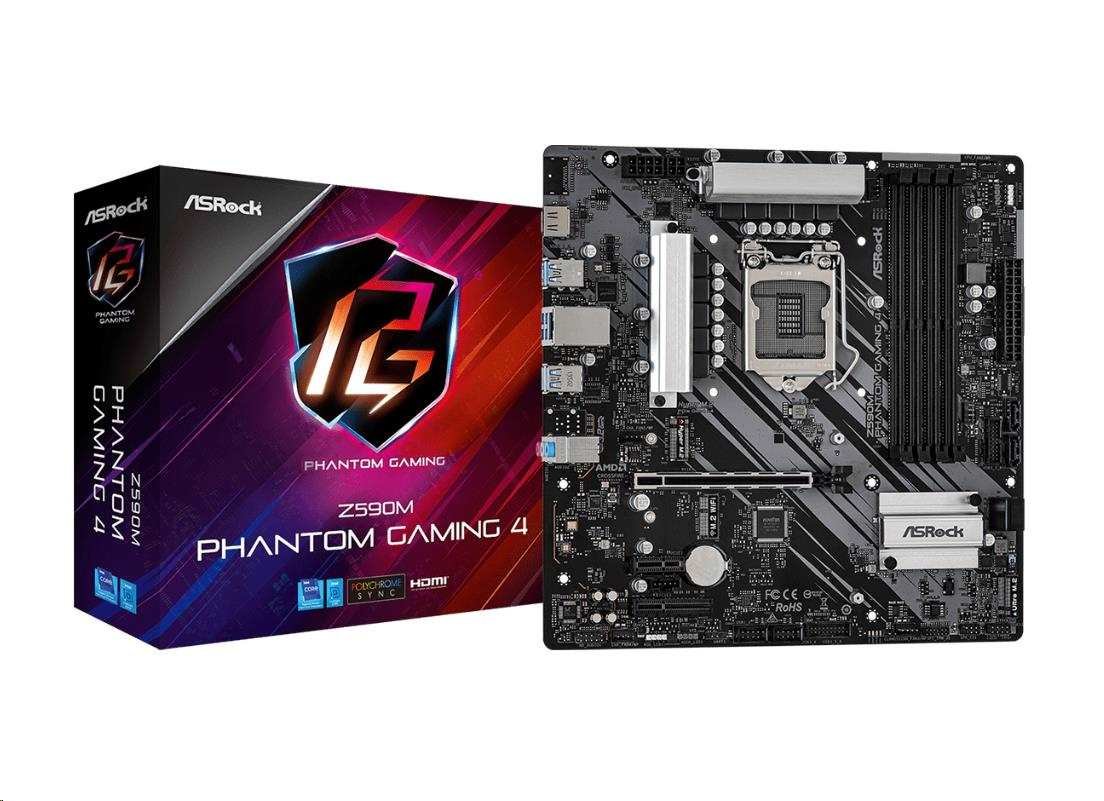 ASRock MB Sc LGA1200 Z590M PHANTOM GAMING 4, Intel Z590, 4xDDR4, 1xHDMI, mATX