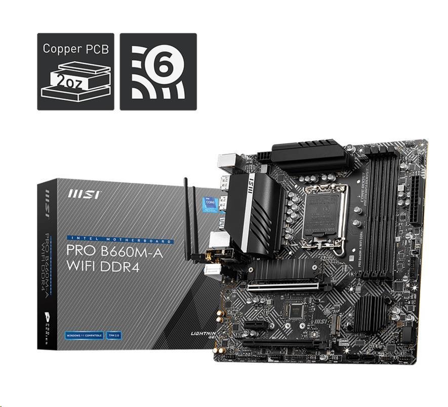 MSI MB Sc LGA1700 PRO B660M-A WIFI DDR4, Intel B660, 4xDDR4, 2xDP, 2xHDMI, WI-FI, mATX