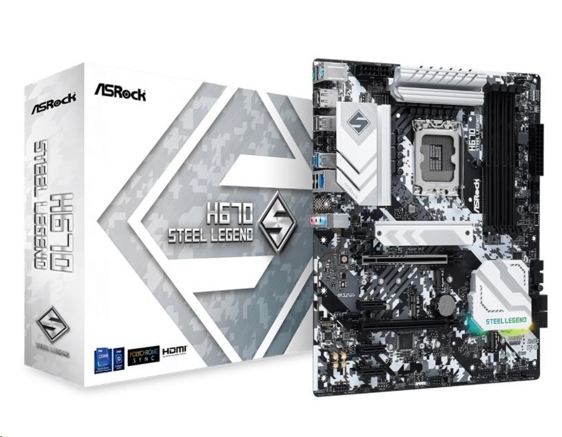 ASRock MB Sc LGA1700 H670 STEEL LEGEND, Intel H670, 4xDDR4, 1xDP, 1xHDMI