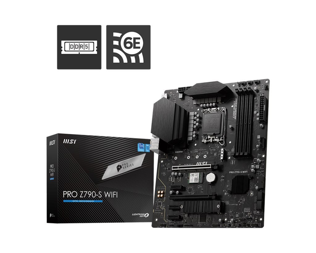 PRO Z790-S WIFI is designed with tons of flexible tools and convenient Wi-Fi solution with DDR5 memory version. The PRO Series is tailored to professionals from all walks of life. The lineup features impressive performance and high quality, while aiming to provide users incredible experience. Users who care about productivity and efficiency can definitely count on the MSI PRO Series to assist you with multitasking and increasing efficiency.