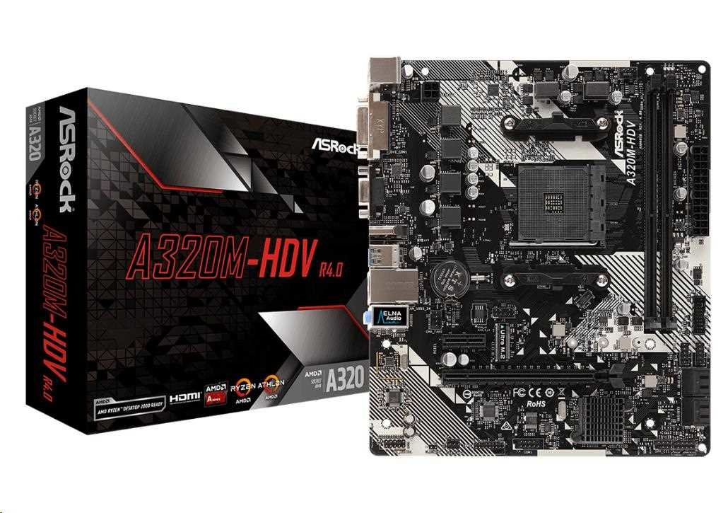 ASRock MB Sc AM4 A320M-HDV R4.0, AMD A320, 2x DDR4, VGA, mATX