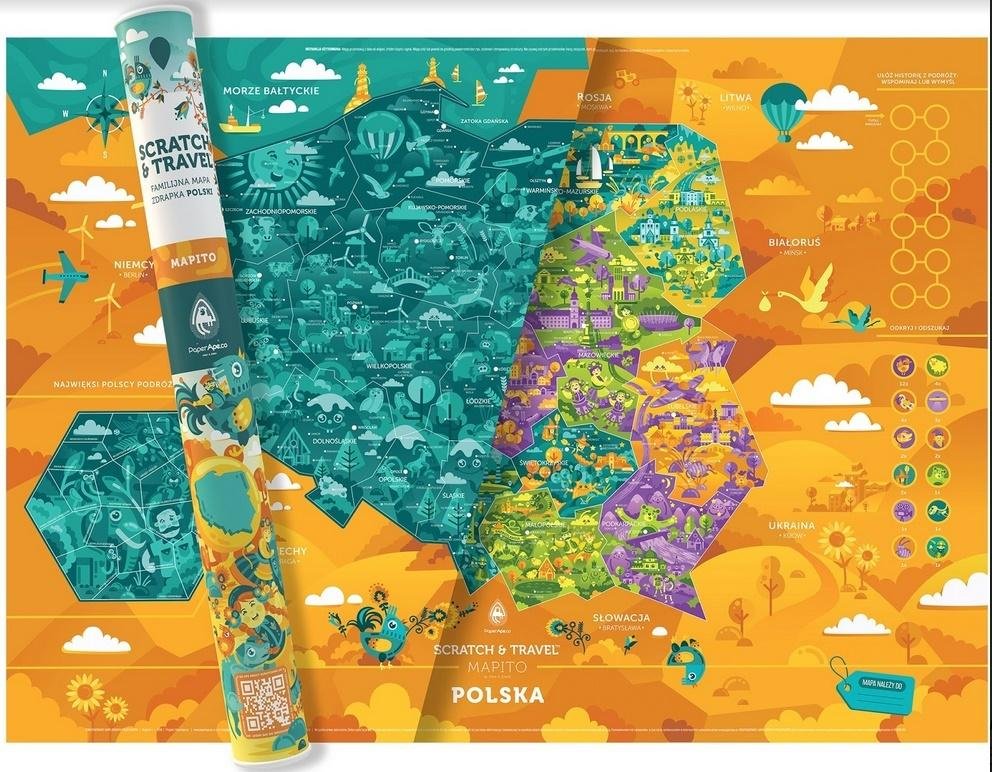 MAPITO POLSKA(C) to bogato ilustrowana, niezwykle kolorowa mapa zdrapka z serii SCRATCH&TRAVEL, a także EDUKACYJNA i ODKRYWCZA ZABAWA RODZINNA. Jest prostą, przyjemną rozrywką integracyjną, dzięki której zgłębicie wiedzę o swoim kraju i jego kulturze. Na mapie zostali przedstawieni najwięksi...