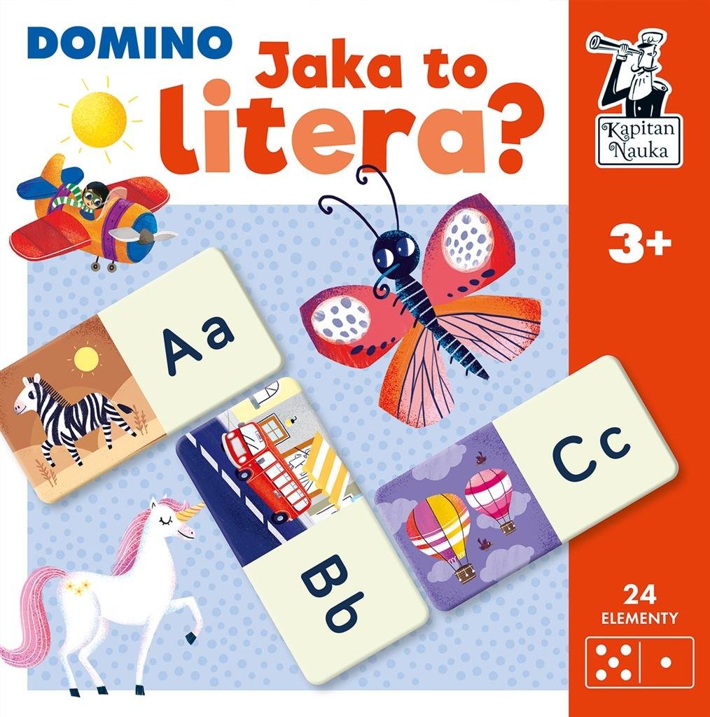 Domino. Jaka to litera (3+) to obrazkowa gra dla najmłodszych dzieci, dzięki której poznają i zapamiętają litery oraz wyrazy, które się nimi rozpoczynają. Celem zabawy jest dopasowanie do siebie kafelków z obrazkami i literami oraz jak najszybsze ułożenie ich tak, by wykorzystać wszystkie elementy. Gra przygotowuje do nauki czytania, doskonaląc percepcję wzrokową, pamięć i spostrzegawczość.