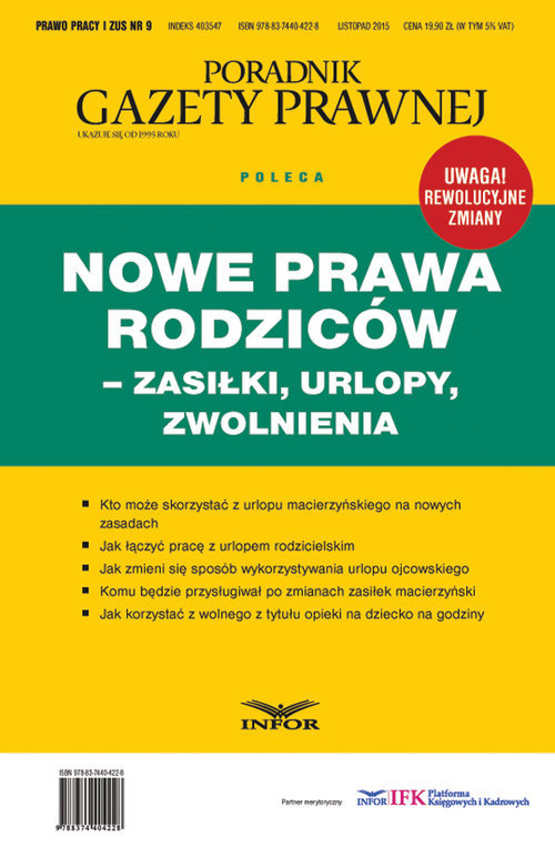 Nowe prawa rodziców - pierwszy i jedyny na rynku kompleksowy poradnik wskazujący rodzicom jak w praktyce korzystać z nowych przepisów po 1 stycznia 2016 r., a firmom – jak je stosować.