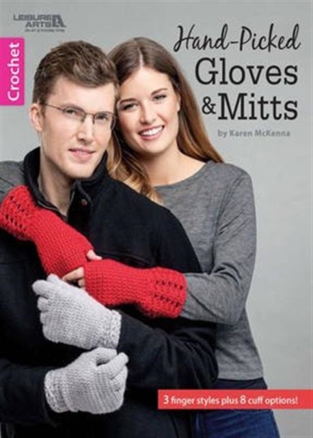 Easy to crochet hand warmers. Sized for toddlers, children and adults. Designs include finger less or full-coverage gloves and mitts in eight looks.
