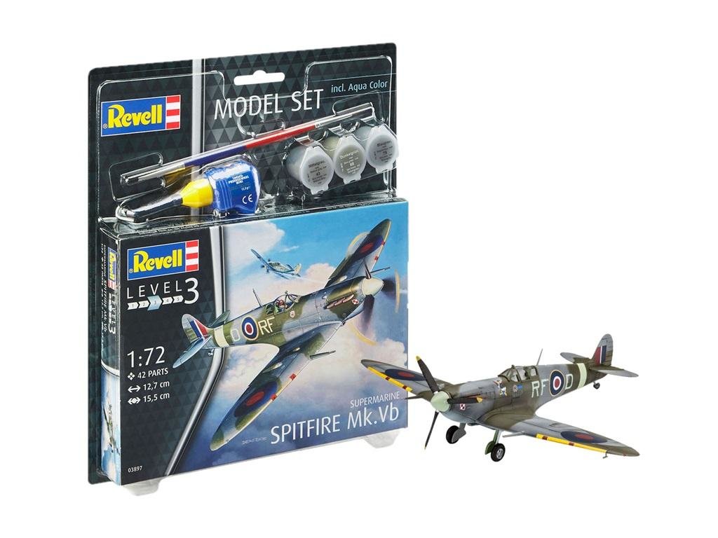 Model Set Supermarine Spitfire Mk.Vb od značky Revell nabízí kompletní balení pro sestavení včetně základních barev, štětce a lepidla. Díky měřítku 1:72 a 42 dílkům je vhodný pro pokročilejší modeláře od 10 let - náročnost 3 na škále obtížnosti vám umožní vytvořit věrnou a detailní repliku s rozměry 127 mm na délku a rozpětím křídel 155 mm. Model zachycuje charakteristické rysy tohoto ikonického letounu z období druhé světové války.