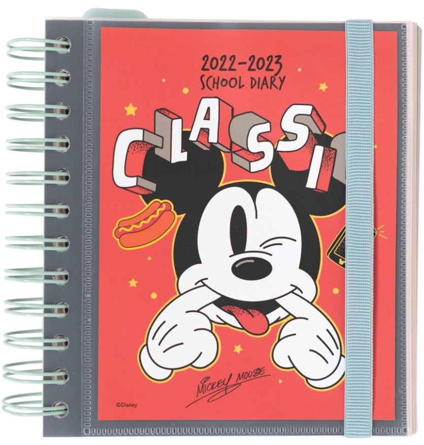 Oficiální produkt - 11měsíční školní plánovač v kroužkové vazbě na rok 2022/2023 z katalogu kancelářských a dárkových produktů s grafikou, motivem a licencí populární kreslené postavičky Mickey Mouse od společnosti Disney.
