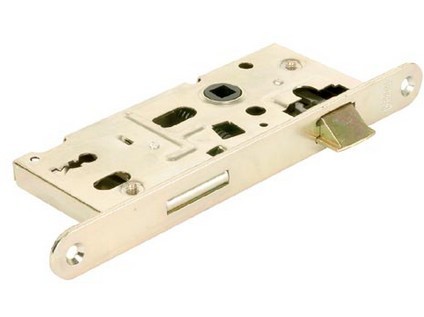 Zadlabací obyčejný zámek K103 jednozápadový bez převodu s otvory pro dělené štíty je univerzální na pravé i levé dveře.