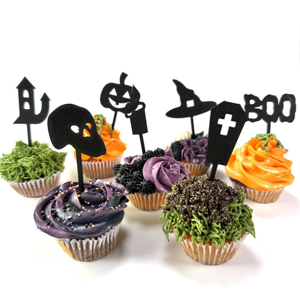Halloweenské zápichy na dort, muffiny, cupcakes, či jednohubky vyrábíme na 3D tiskárně z materiálu PLA plast (materiál biologicky odbouratelný), odolný do 50°C, nevhodný do myčky na nádobí. Před prvním použitím a vždy po použití zápichy omyjte jarovou vodou a důkladně osušte. Není určeno pro děti do 3 let, hrozí odlomení malých částí.