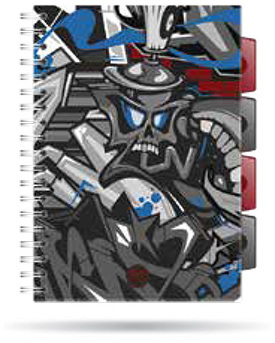 200 stron w kratkę; Mikro perforacja ułatwia wyrywanie kartek; 5 przekładek pomocnych w sortowaniu notatek; Transparentna koperta na wszystkie dodatkowe notatki; Zakładka z linijką.