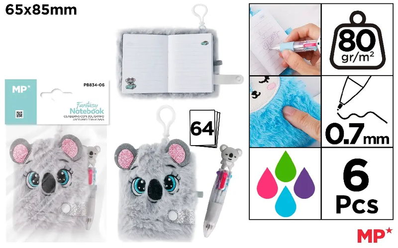 Notes pluszowy z kolorowym długopisem mini 4w1 0,7mm, Mysz, Main Paper