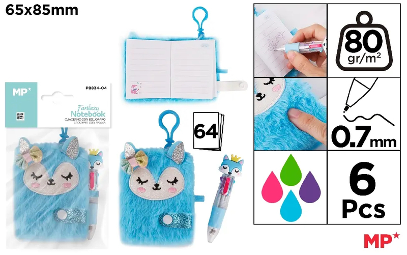 Notes pluszowy z kolorowym długopisem mini 4w1 0,7mm, Lis, Main Paper