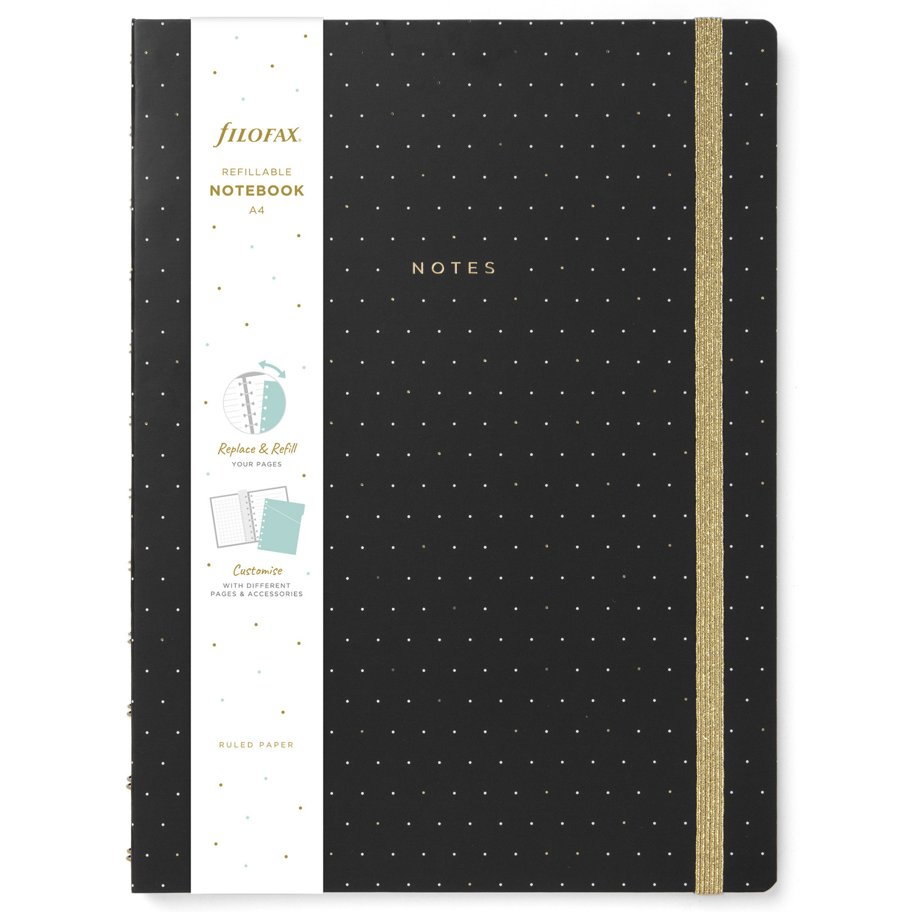 Filofax Notebook Moonlight A4 je ideálním společníkem pro každého, kdo chce mít své poznámky srozumitelně a krásně uspořádané. Tento elegantní a znovu plnitelný zápisník v sobě spojuje styl a funkčnost, kterou oceníte nejen v práci či škole, ale i při osobním plánování.