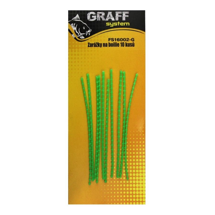 Klasická boilie zarážka (kuličkový proužek) na fixaci boilie, partiklů, pelet nebo jiných návnad. Proužek se navlékne do připraveného očka na návazci mezi dvě kuličky, odstřihne se zbytek proužku a zvolna se zatáhne do připravené návnady. Jedná se o nejpoužívanější zarážku na nástrahy. Balení 10 ks.