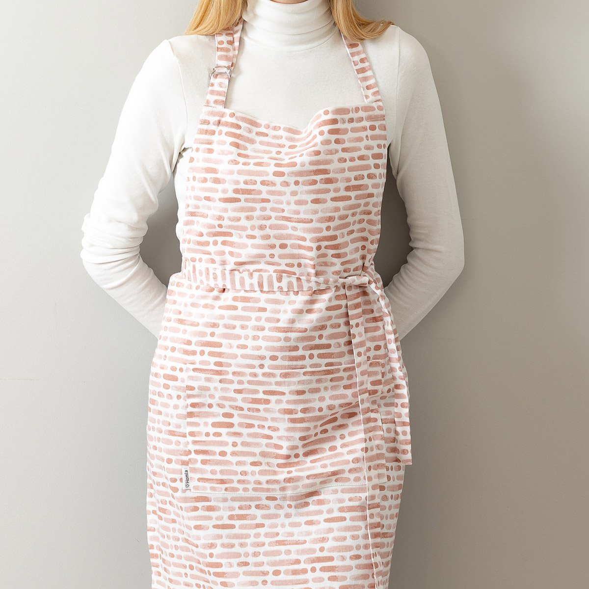 Zástěra TULDES padne každé postavě - to vše díky pohodlnému nastavení výrobku v pase a u krku. Je mimořádně praktická, protože má malou kapsu, do které si můžete uložit kuchyňské doplňky. Zástěru zdobí růžový vzor připomínající malé cihličky naskládané na sebe.