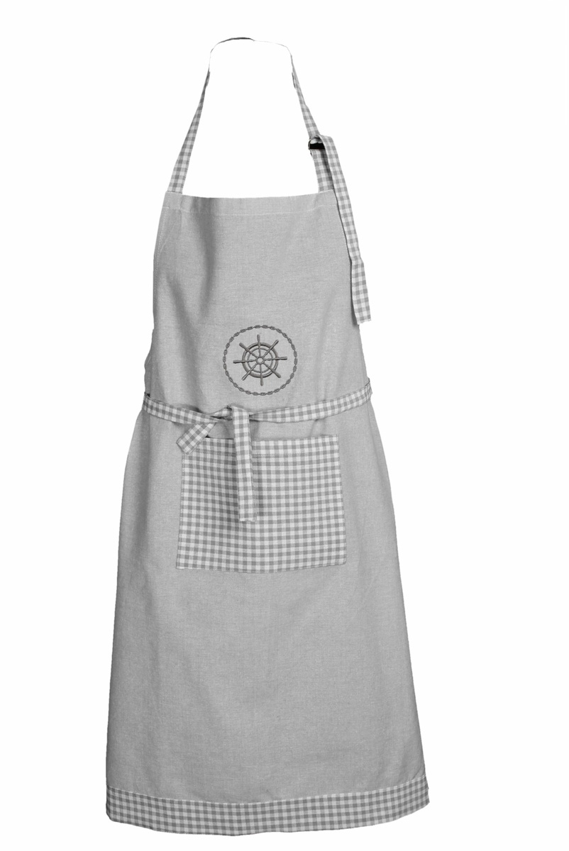 Zástěra v příjemných šedých a bílých tónech s motivem námořnického kruhu a kára oživí vaši kuchyni a ochrání váš oděv před zašpiněním, ať už připravujete cokoli. Navíc je snadná na údržbu - lze ji prát v pračce a žehlit do 200 °C, čímž si uchová svůj vzhled i po opakovaném použití.