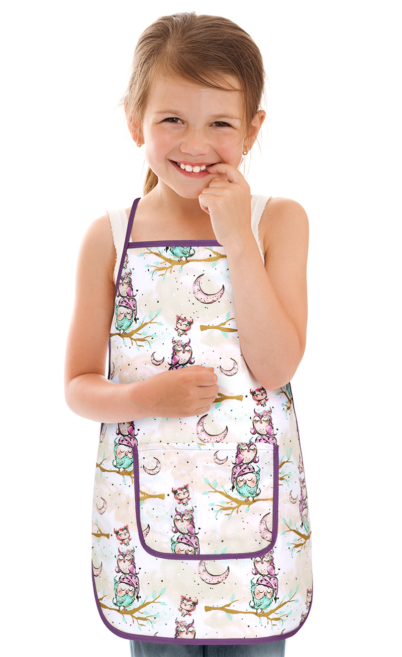 Dětská zástěrka - sovička na větvi - 47 x 60 cm, pro děti ve věku 5 - 8 let