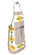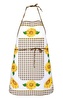 Praktická zástěra v dekoru slunečnic a kára působí příjemným, veselým dojmem.