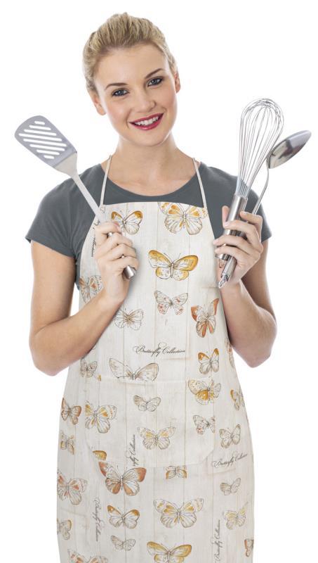 Kuchyňská zástěra EMA - motýlci na dřevě - zástěra 67x84 cm