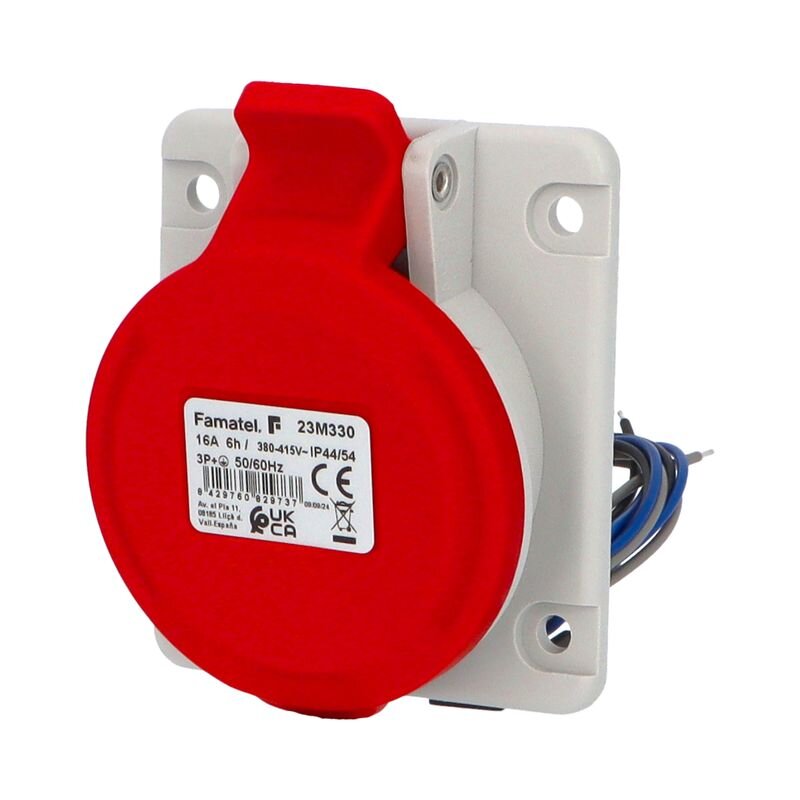 Zásuvka vestavná 23M330 IP44-54/400V/16A/4P 6h, šikmá 10°, mikrospínač - SpeedPRO. Příruba 75x85 mm.