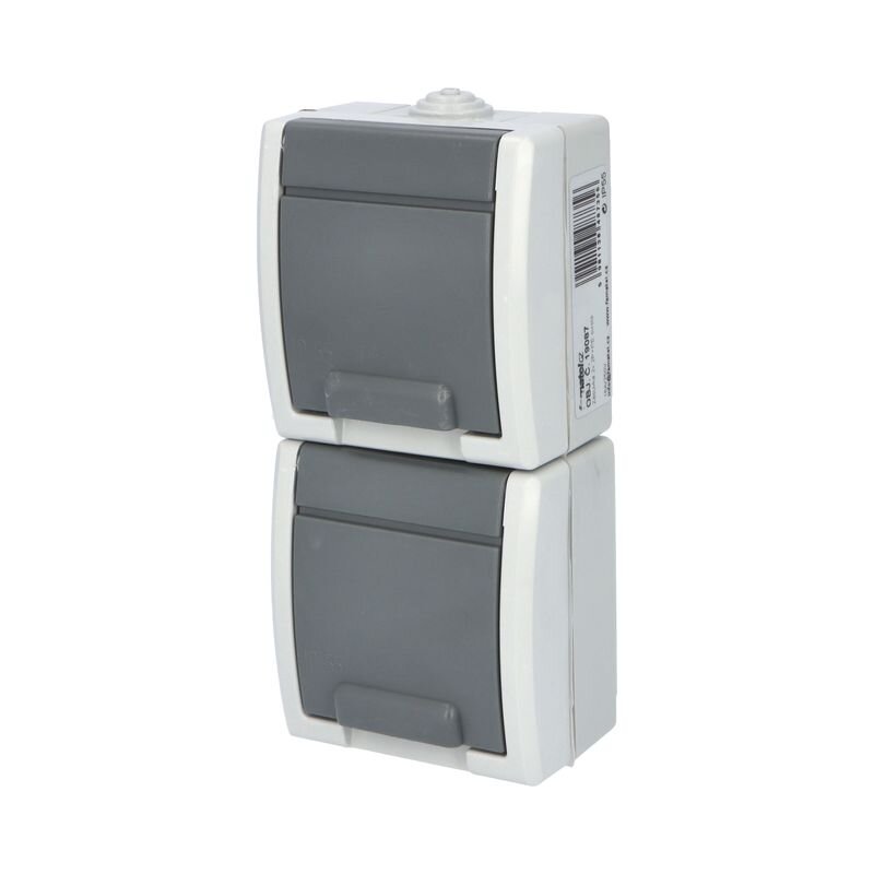 ATLAS 19087 IP55 Zásuvka 2x 2P+PE, 2-násobná svislá s ochr. kolíkem, na povrch, šedá