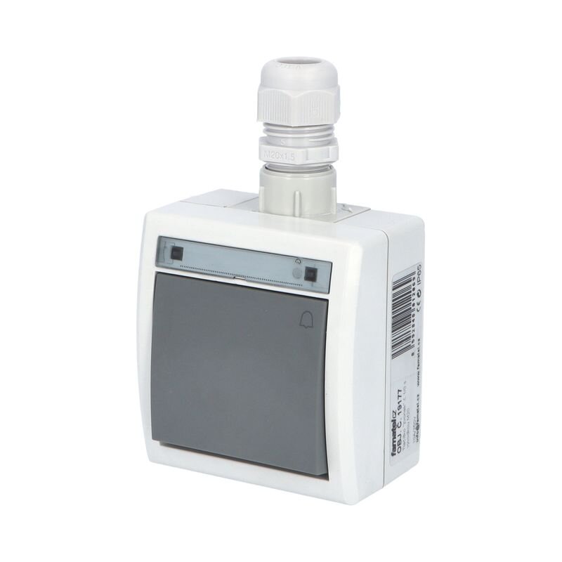 ATLAS 19177 IP65 Tlačítko symbol "zvonek" č.1/0 s vývodkou M20, na povrch, šedý.