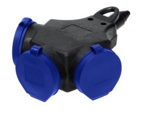 Dílenská rozbočovací zásuvka, se stupněm krytí IP44. Je vybavena 3 zásuvkami (2P + Z) s gumovými kryty proti stříkající vodě a prachu a očkem pro snadné zavěšení na bezpečné místo. Kabel je veden přes vestavěnou univerzální kabelovou průchodku o maximálním průměru 13 mm (H07RN-F3x2,5 mm²).