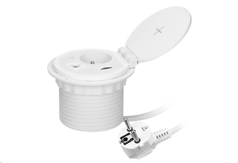Kompaktní vestavná zásuvka pro montáž do pracovních či kancelářských stolů.