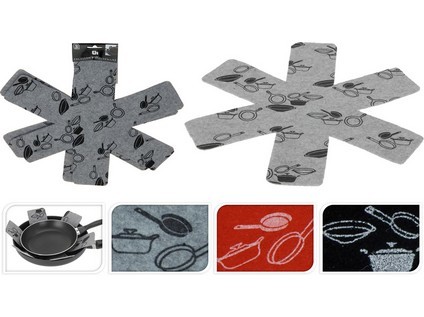 Proložka mezi pánve - vynikající ochrana pánví při skladování v kuchyni. Pánve jsou chráněny proti vzájemnému poškrábání při vkládání do sebe (stohování). Vhodné pro všechny velikosti pánví, i pro ostatní druhy nádobí.rozměry: 38 x 0,3 cm balení: 3 ks