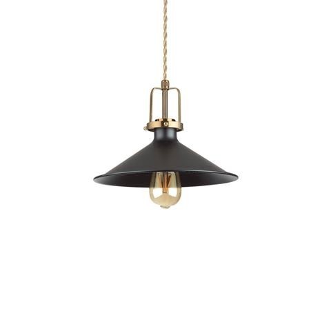 Závěsné svítidlo Eris-3 SP1 z kolekce interiérového osvětlení Ideal Lux v menším provedení o celkovém průměru 29 cm se hodí do rustikálně řešených místností. Vhodně osvítí Vaši kuchyň, jídelnu či pracovnu, kde se bude vyjímat svým detailně zpracovaným kovovým talířovitým difuzorem a základnou o průměru 10 cm s matně černou povrchovou úpravou. Detaily jako přívodní kabel a držák difuzoru jsou v saténově zlatém provedení. Svítidlo je osazeno paticí E27 o maximálním příkonu 1 x 60W. Zdroj není součástí balení, doporučujeme Vám použít LED filamentovou žárovku, která podtrhne vzhled lustru a ušetří elektrickou energii. Dodavatel doporučuje zvolit LED žárovku (obj. kód 101286) o příkonu 4 W a teplotě chromatičnosti 3000K (neutrální bílé světlo). Pletený přívodní kabel je pokrytý tkaninou a lze jej výškově nastavit od 31 cm do 208 cm délky. Krytí IP20 je určeno pro vnitřní montáž.