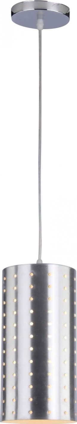 Závěsný lustr s válcovitým chromovým stínidlem v retro stylu pro elegantní nasvícení jídelny, kuchyně nebo komerčních interiérových prostor jako jsou restaurace nebo kavárny. Pro jeho výrobu byl použit kvalitní litý hliník s vnější povrchovou chromovou úpravou v lesku. Stínidlo o rozměrech 14 cm x 28 cm ve tvaru válce je pravidelně poseto po celé ploše jemnými dirkami, které při rozsvícení světla vytvářejí jemný světelný efekt po stěnách místnosti. Uvnitř je ukryta patice E27 s maximálním příkonem zdroje 1x40W. Zdroj není součástí balení. Pro úsporu energie doporučujeme použít úspornou nebo LED žárovku s max. příkonem 40 W energetické třídy A+ až E. Délka zavěšení je flexibilně nastavitelná při instalaci. Krytí IP20 značí vhodnost použití v interiéru. Krytí IP20 Interiérová svítidla jsou vyrobena pro použití v domácnosti, kanceláři nebo v jiných vnitřních prostorách. Označení krytí stupněm IP vyjadřuje dva údaje. Prvním je stupeň ochrany proti prachu a druhým proti vodě. Svítidla s krytím IP20 jsou chráněna proti vniknutí pevných cizích těles o průměru 12,5 mm a větších a před dotykem prstem. Proti vodě nejsou chráněna. Toto krytí je nejčastějším pro zařízení určených pro interiéry.