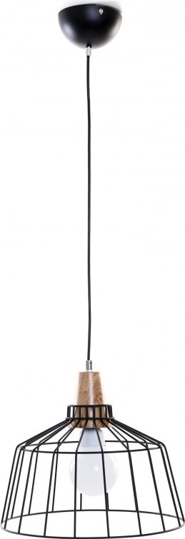 Poslední kus skladem. Závěsné drátěné dekorativní svítidlo v jedinečném retro stylu rozsvítí jakýkoli interiér svým rozptýleným světlem. Je ideální pro zavěšení nad jídelní stůl nebo barový pult. Délku zavěšení lze libovolně nastavit při instalaci. Stínidlo s průměrem 33 cm je vyrobeno z kvalitního odolného kovu s vnější povrchovou úpravou v černé barvě v kontrastu s výraznou světlou dřevěnou patkou. Uvnitř níž je skryta patice E27 s maximálním příkonem zdroje 1 x 60 W, který není součástí balení. Pro úsporu energie doporučujeme použít úspornou nebo LED žárovku. Lze použít jakýkoli zdroj s max. příkonem 60 W energetické třídy A+ až E. Krytí IP20 označuje vhodnost použití v interiéru. Krytí IP20 Interiérová svítidla jsou vyrobena pro použití v domácnosti, kanceláři nebo v jiných vnitřních prostorách. Označení krytí stupněm IP vyjadřuje dva údaje. Prvním je stupeň ochrany proti prachu a druhým proti vodě. Svítidla s krytím IP20 jsou chráněna proti vniknutí pevných cizích těles o průměru 12,5 mm a větších a před dotykem prstem. Proti vodě nejsou chráněna. Toto krytí je nejčastějším pro zařízení určených pro interiéry.