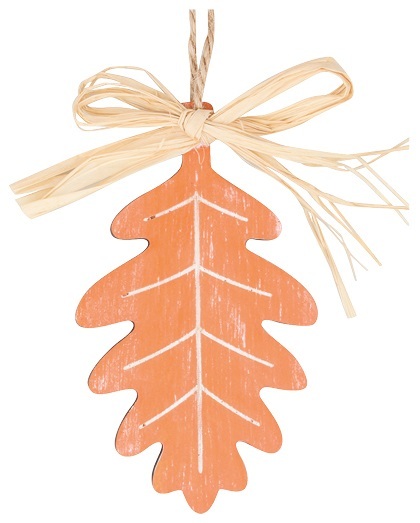 Dřevěný list na zavěšení oranžový dub 10 cm