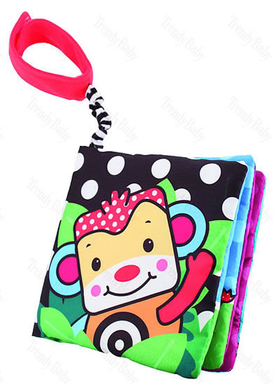 Textilní knížka krásnými barevnými obrázky a s úchytem na suchý zip k zavěšení na autosedačku, kočárek apod. pro zábavu dítěte doma i na cestách. Šusticí stránky podporují rozvoj hmatu a sluchu, výrazné syté barvy pomáhají rozvoji zraku dítěte. Vhodné od 6 měsíců.