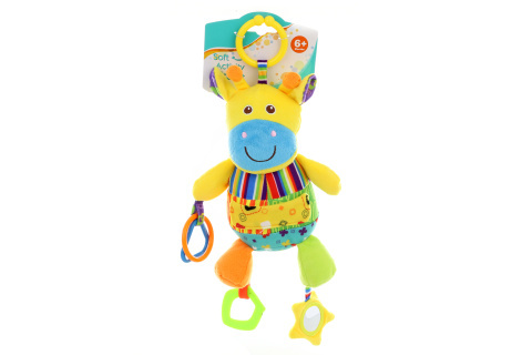Závěsná žirafa s kousátkem, kroužky a kapsičkou na bříšku, ručičky jsou šustící pro rozvoj sluchu. Rozměry žirafy 19 x 26 cm. Rozměry balení cca 30 x 18 x 7 cm. Věk 6 měsíců + číst celé