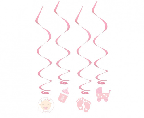Závěsné spirály papír-folie Baby girl 60 cm - 4 ks