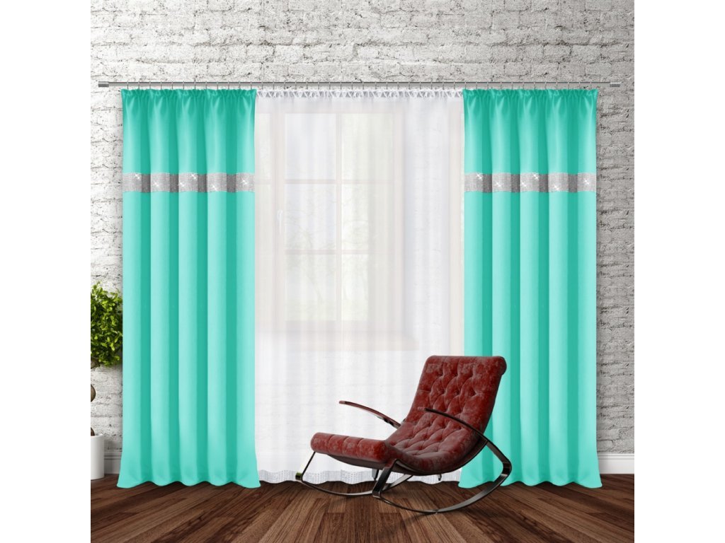 Dekorační závěs se zirkony s řasící páskou COSMOS 250 mátová 140x250 cm (cena za 1 kus) MyBestHome
