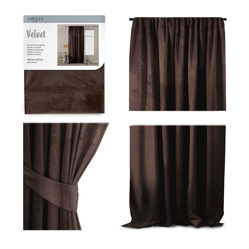 Závěs AmeliaHome Velvet 140x270 cm tmavě hnědý, velikost 140x245