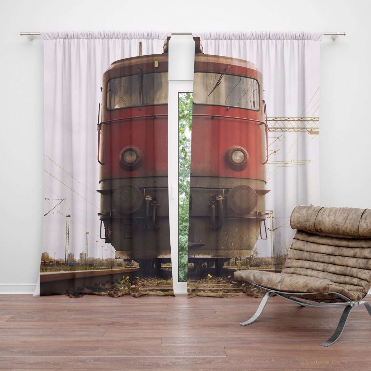 Závěs Červený vlak na kolejích: 2ks 140x250cm