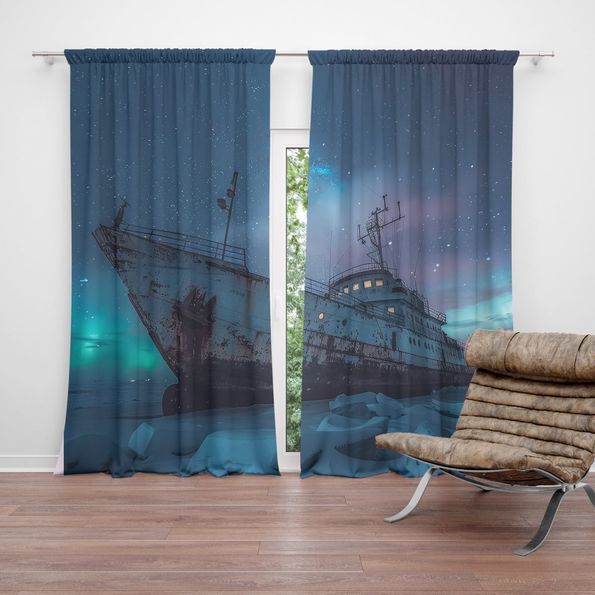 Závěs Vrak lodi při polární záři: 2ks 140x250cm