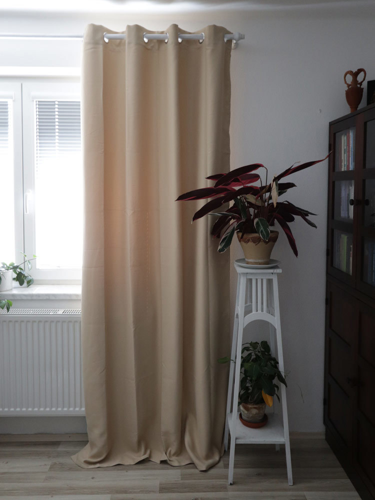 Zatemňovací hotový závěs ve světle kávové barvě. číst celé