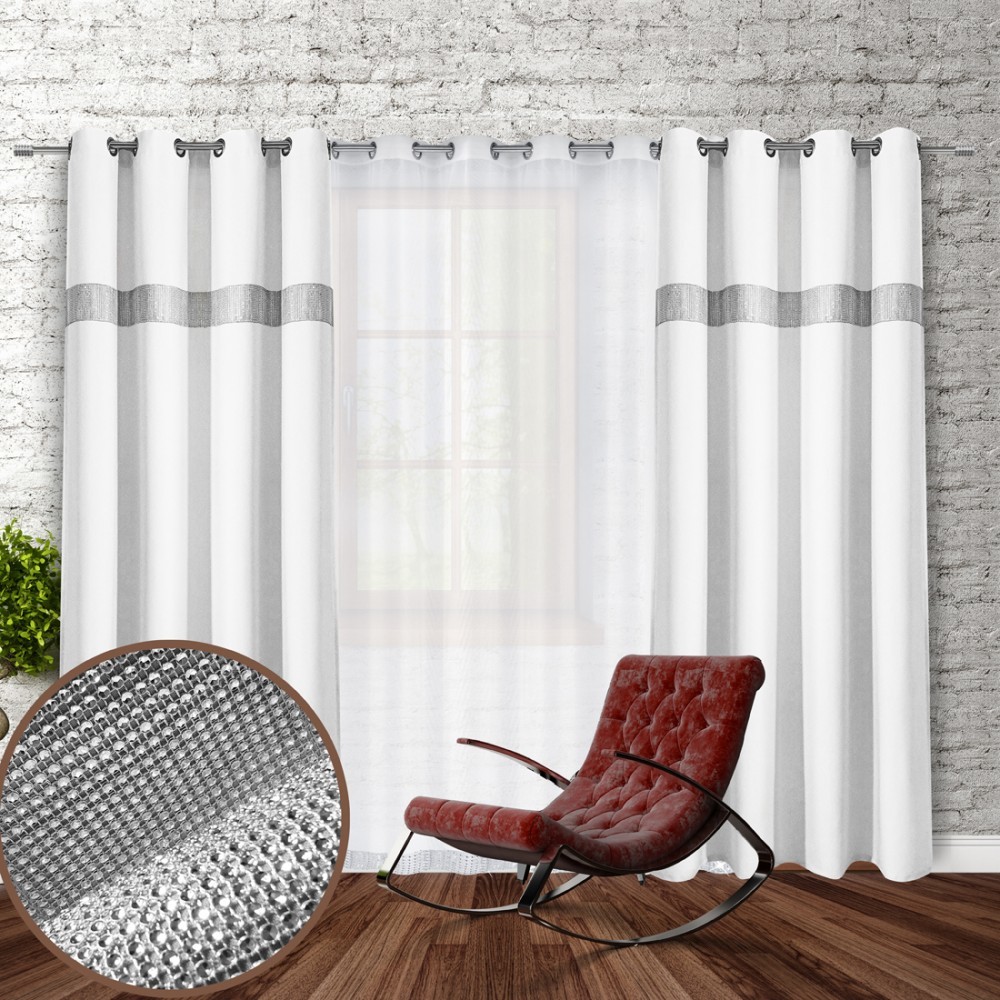 Dekorační závěs se zirkony s kruhy GLORY 250 bílá 140x250 cm (cena za 1 kus) MyBestHome