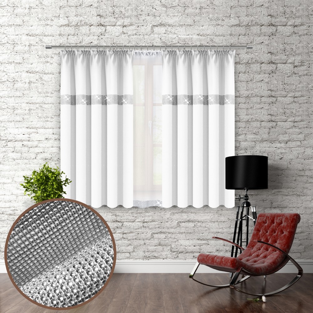 Dekorační závěs se zirkony s řasící páskou GLAM 160 bílá 140x160 cm (cena za 1 kus) MyBestHome