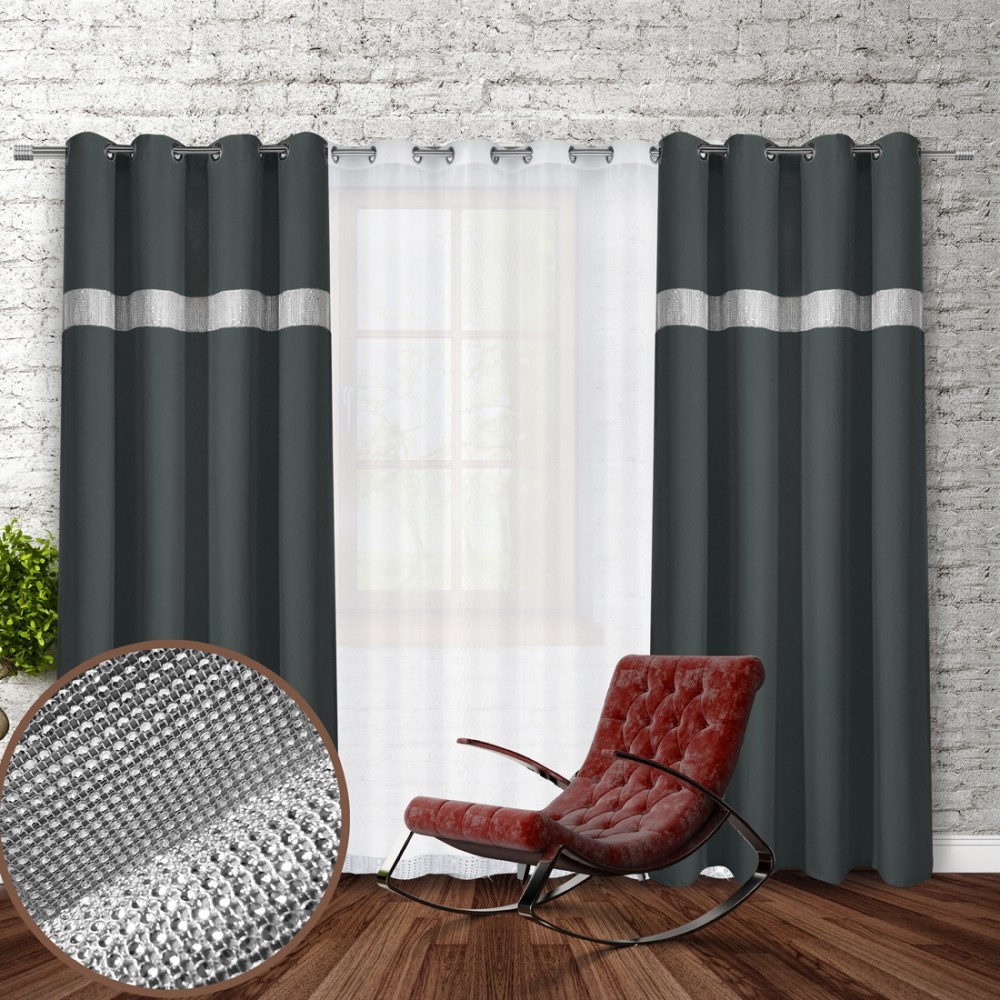 Dekorační závěs se zirkony s kruhy GLORY 250 grafitová 140x250 cm (cena za 1 kus) MyBestHome