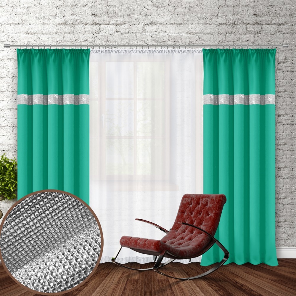Dekorační závěs se zirkony s řasící páskou GLAM 250 mořská zelená 140x250 cm (cena za 1 kus) MyBestHome