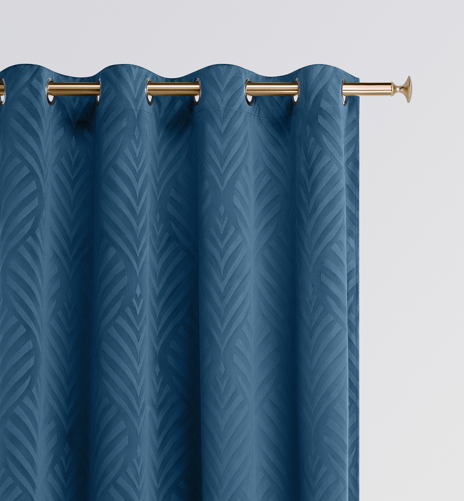 Dekorační vzorovaný velvet závěs s kroužky LEAF tmavě modrá 140x250 cm (cena za 1 kus) MyBestHome