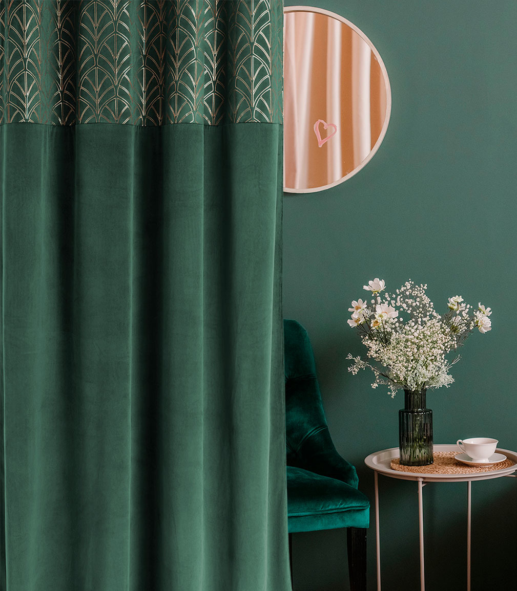 Dekorační vzorovaný velvet závěs s kroužky BLISSY tmavě zelená 140x250 cm (cena za 1 kus) MyBestHome